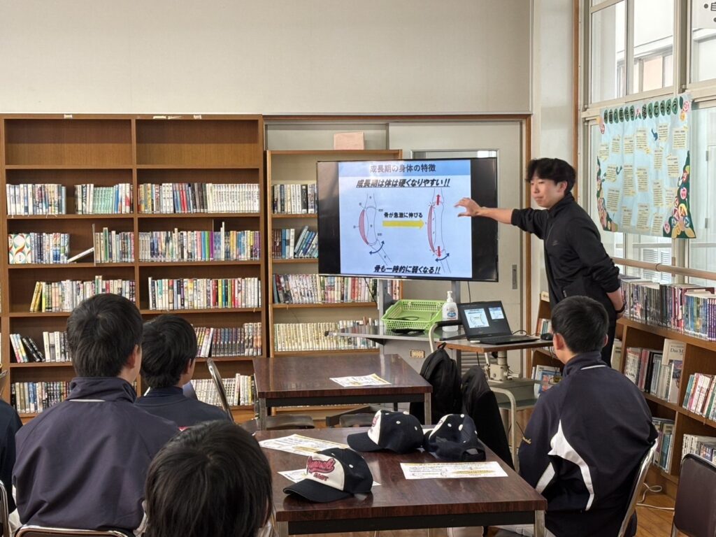 先日、宍粟市立山﨑東中学校野球部でストレッチの講義をしてきました。